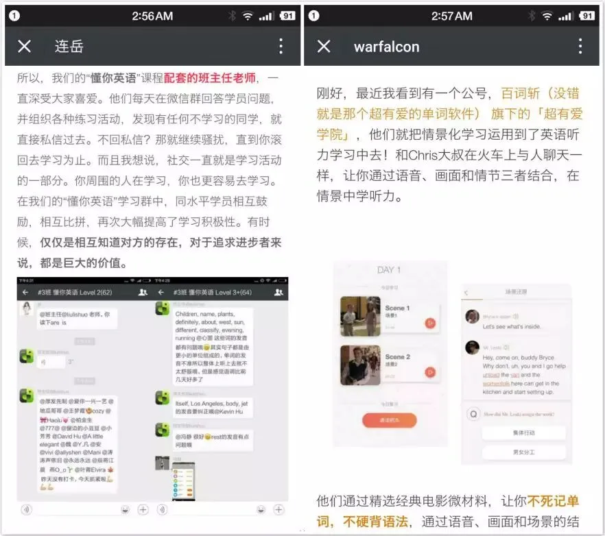一个与此相关的实例,是在连岳与 Warfalcon 等公众号中,能够看到流利说与百词斩的投放文章。这或许表明, App 前期积累的免费流量,并不能完全支撑收费业务,无法完整地替代广告投放的作用。