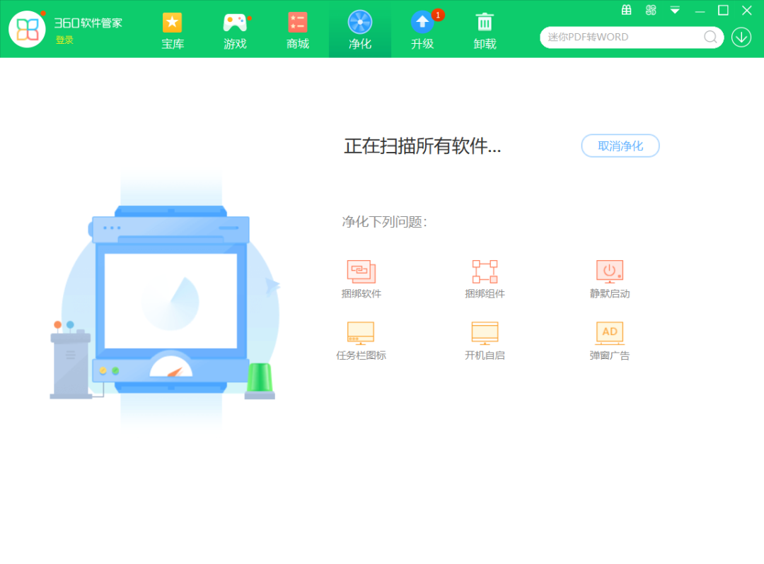 对于已经安装的软件,360软件管家还能对其进行净化扫描,及时识别出流氓软件。