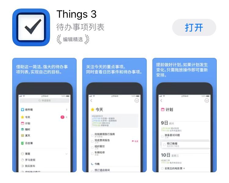 我试过市面上大部分主流任务管理软件,包括 Omnifocus、2Do、Todoist、Wunderlist、滴答清单等等。最后还是坚定地选了 Things,功能上虽然不及 Omnifocus 和 Todoist 强大,但是用软件作者的话来说,「Things 提供了最接近纸笔的流畅体验」,操作最直觉、最不容易分心(对我来说很重要),基本功能也完全足够。