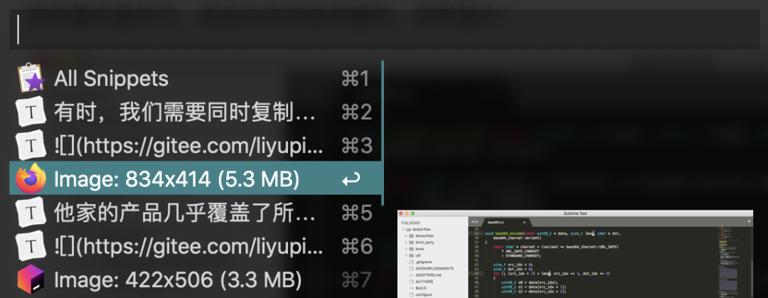 使用 Mac Alfred(或者 Windows 上的 Ditto),可以记录自己很长一段时间内所有复制过的内容,选择性粘贴。并且可以搜索复制历史、查看复制详情等,很方便。