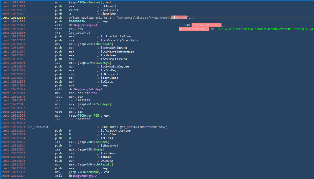 获取屏幕截图4、后门病毒会获取用户电脑已安装的软件列表,如下图所示:
