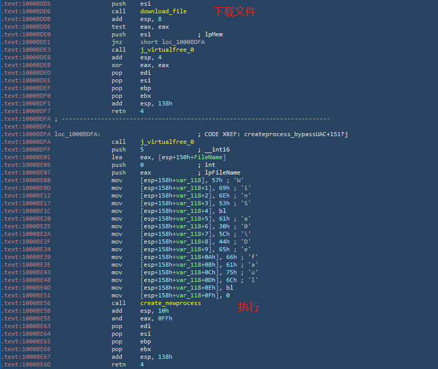 2、除下载执行外,后门病毒还可以通过虚拟映射加载的方式执行任意PE文件,如下图所示: