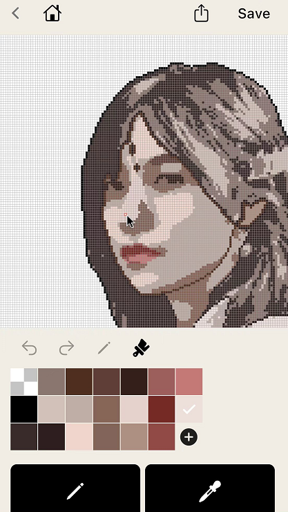 Pixel Me 在 AI 处理上不得不说是有一手的,不管你选择那种像素分布效果都非常不错。不过也能看得出来,如果是侧脸的话,低像素下的效果表现就比较一般了。等 AI 处理完之后,大家还可以逐个的去修改像素点的颜色。