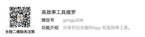 发现更多高效率工具和好玩有趣的App,欢迎关注我的公众号:高效率工具搜罗(ID: gongju006)