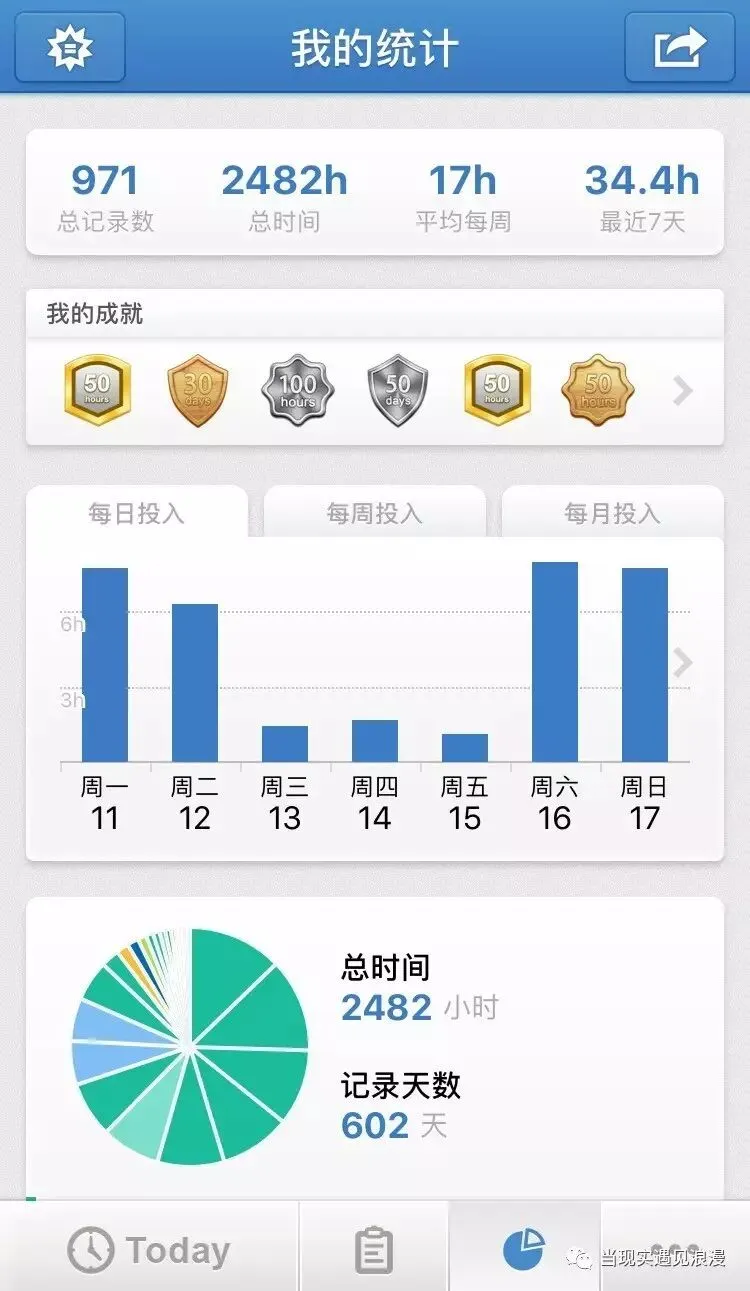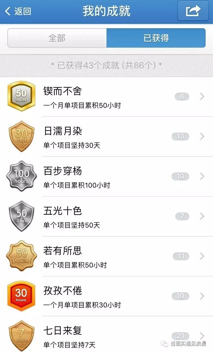 这个App可以让你很直观的看到自己在某个领域或某件事情上所坚持的总时间,还设计了成就挑战系统,会让你有想要加油探索积累的冲劲。