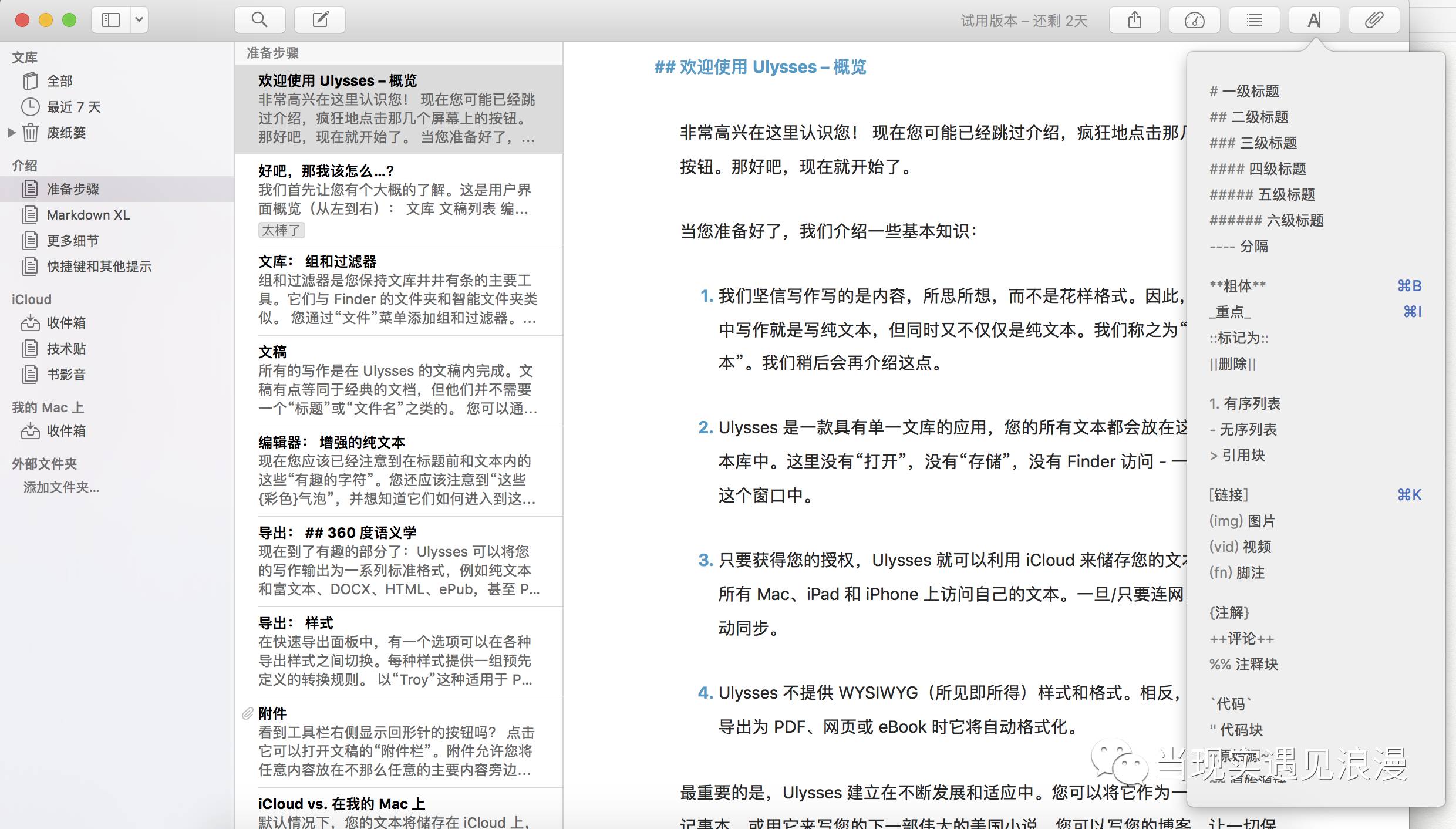 由于【Ulysses】是付费软件并且目前只适用于Apple产品,我也在摸索学习当中,所以此处就不详细展开,有兴趣的朋友可以在文末留言咨询。
