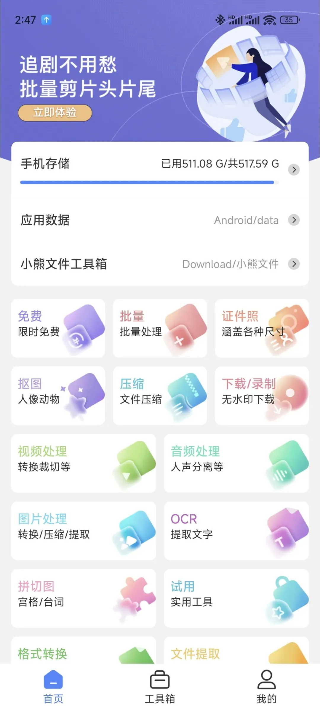 大家手机里是不是也装了一堆“一次性”APP?修图一个,解压一个,转格式又一个,内存告急不说,找起来还麻烦。最近北瓜在折腾手机时,意外发现了一款整合型的神器——「小熊文件工具箱」,用完之后我果断卸载了手机里五六个零散软件。