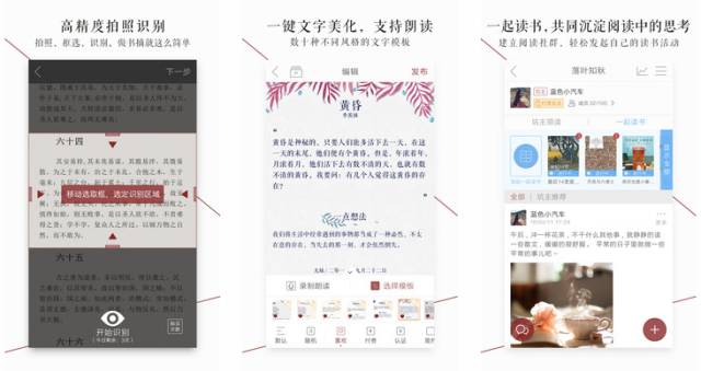 一款高颜值的读书笔记、随笔管理工具,支持拍照识别,拍照就可以将图片上的文字识别成文本,看到喜欢的句子或者需要做摘抄的内容,直接拍照一键识别即可。识别后的内容可以进行编辑整理,多种不同风格背景模板可用于装饰文字,如果你是一个阅读爱好者,拿它来整理读书笔记或者找阅读同伴也是非常赞的。