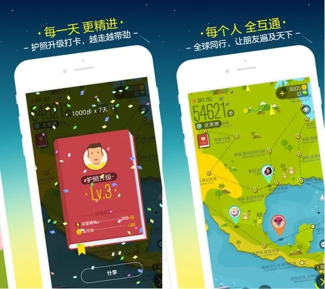 一款颜值很高的计步软件,App的创意也是眼前一亮,通过每天走的步数转化成能量,然后就可以在地图上移动到其它国家去,环游世界不再是梦,用步数就可以在地球上来一趟环游世界。