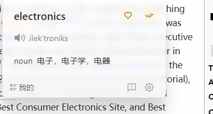 如果把鼠标指到生词上,还会弹出一个单词卡片,你可以查看它更详细的翻译、音标,词性,点击喇叭还能听发音。