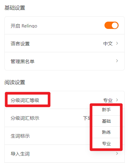 简单,这个插件提供了一个“ 词汇等级 ”的选项,