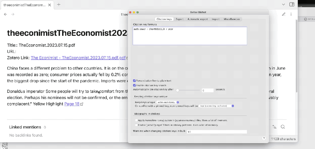 Zotero 还能通过插件和 Obsidian 打通使用,这一点很适合看每周的《经济学人》。