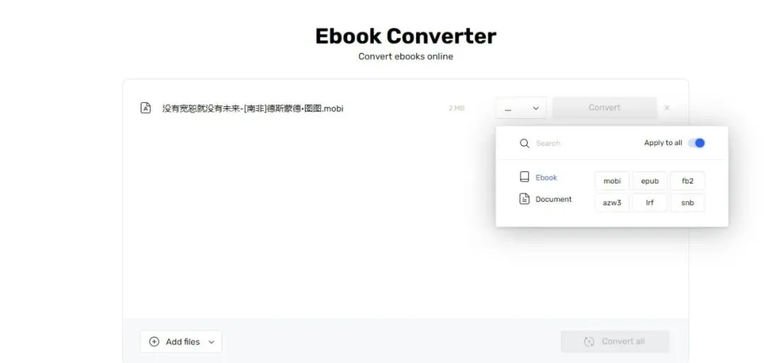 这个工具支持多种文件格式的转换,包括音频、视频、图像、电子书等。