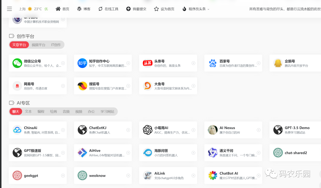 6,资源专区,提供不同的专区,创作平台,自媒体,开发,资源,AI专区等