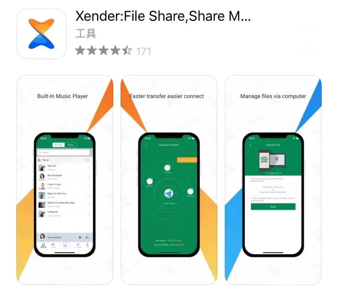 Xender是一个电脑手机文件传输工具。你只需要扫描电脑上的二维码就可以连接。就可以用电脑访问手机上的图片,视频,音乐等各种文件,当你手机上很多应用,可以选择删除应用,而且这些所有操作都不需要连接网络。它同时支持安卓,iOS,网页版。