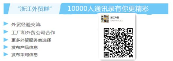 加入“浙江外贸”10000人通讯录,经验交流,商机合作,互帮共赢!加微信hangzhou-ceo或长按此图片加入!