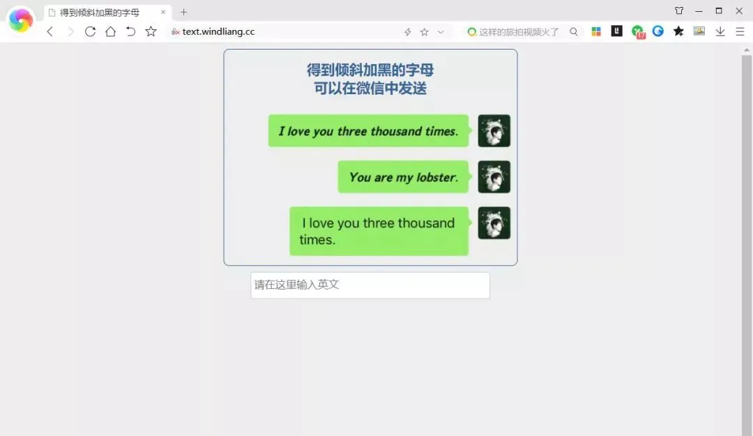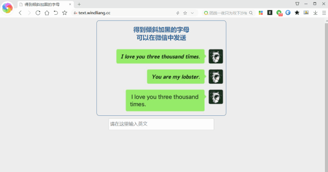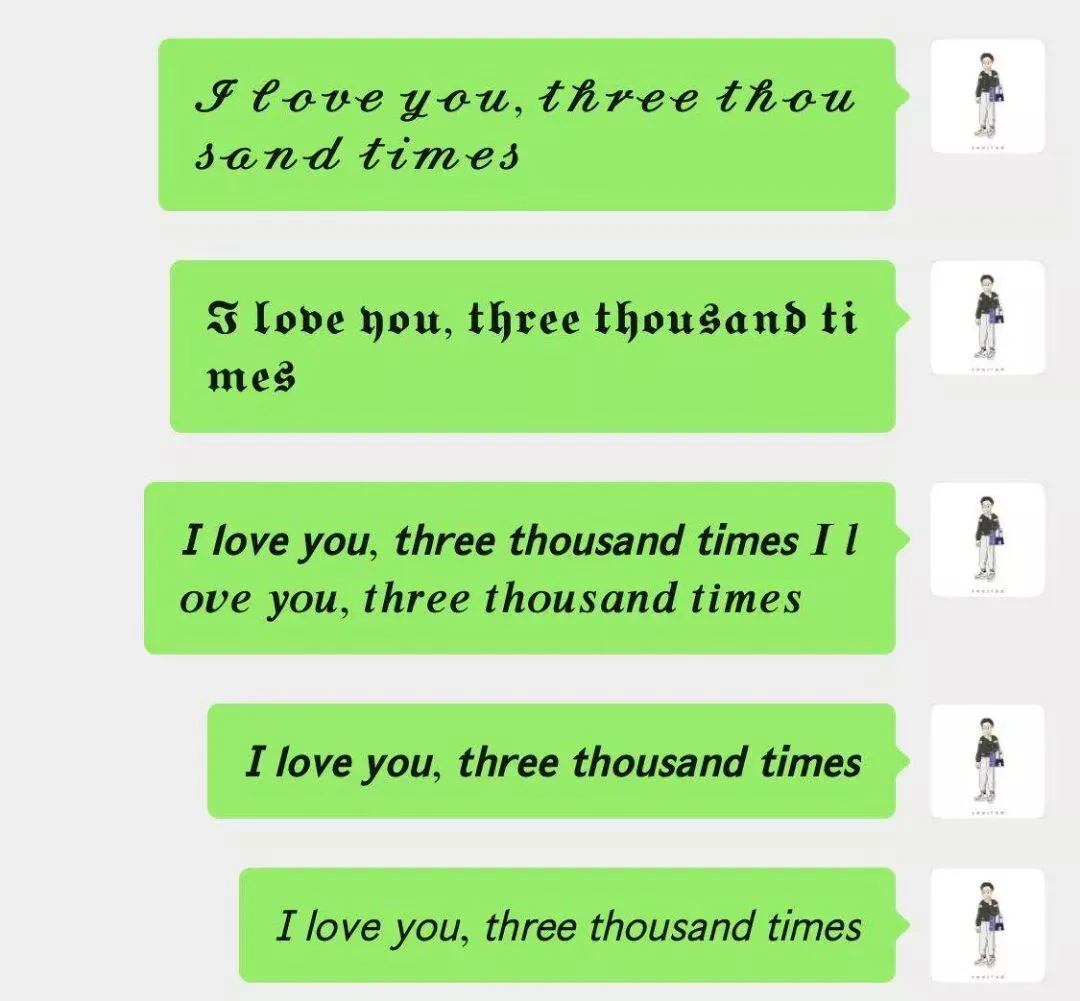 在微信端常规的打字里,我们可能只能打出并看到默认的“ I love you, three thousand times。”
