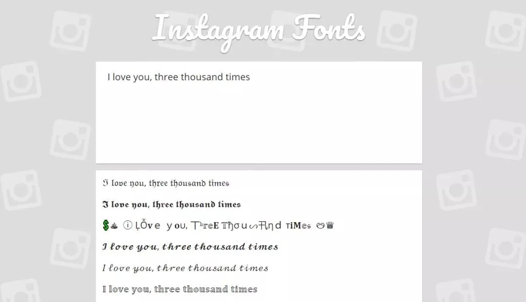 相同原理,在Instagram Fonts中我们同样可以将文字输入后直接转换花样字效,字体种类也比较丰富,除了加粗斜体外还有意大利斜体、哥特体等多种字效。