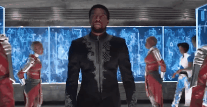 先来看看原版的表情包,我选择了《黑豹》里的一个片段,是黑豹特查拉与皇家护卫队胸前合手礼的GIF。