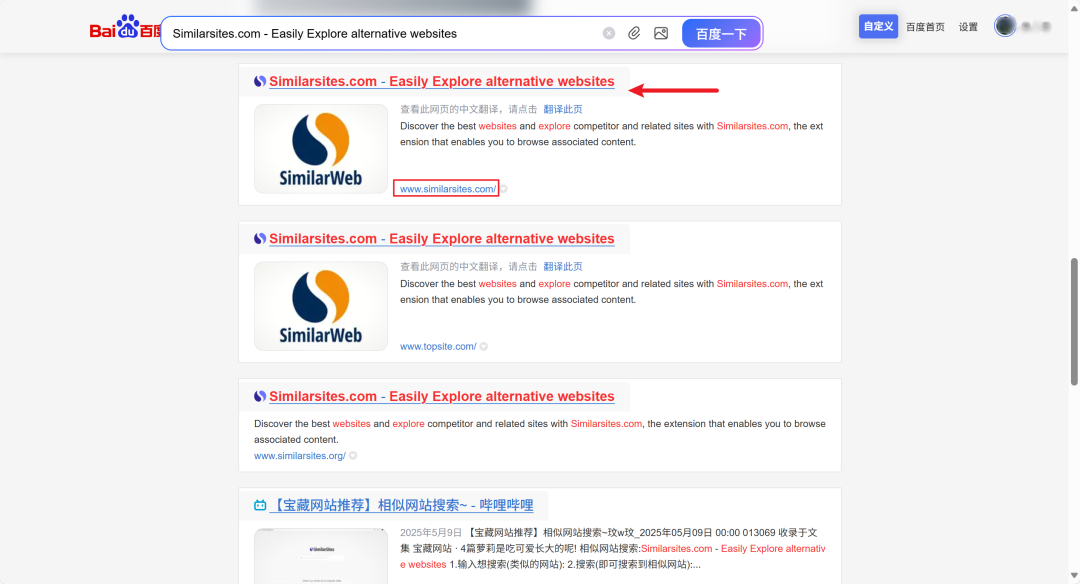搜到的相似网站会以相似度由高到低排序展示。