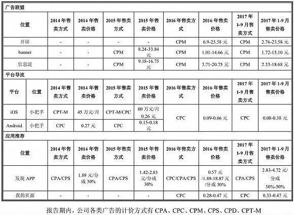 工具类App的通用逻辑都是增加用户使用时长,然后做广告变现、或者给其他App导流。招股说明书中显示,其公司的资产总额为31,356.56 万元,负债总额为4,422.34万元,所有者权益为26,934.22万元(2017年12月31日),收入来源大部分为广告。风险提示指出,2014 年、2015 年、2016 年和 2017 年 1-9 月,发行人互联网广告信息服务收入占比分别为 94.84%、98.12%、98.99%和 98.86%。在这种广告占比下,公司并没有适时调整营收结构。从2014年开始,墨迹天气进入智能硬件市场,研发并销售针对室内外温湿度、空气质量、气压等监测功能的智能家居设备“空气果”,试图以软硬件结合的方式,把业务由宏观天气扩展到微观的个人家居环境。但是,硬件化尝试并未改善墨迹天气的营收结构。