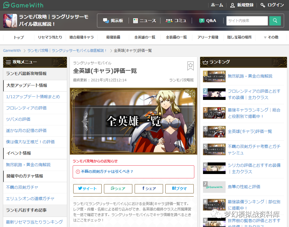 两个日服相关的梦战攻略站点,特别是game with,有专门梦战攻略团队保持更新,与日服版本的各类活动保持更新,虽然比我们慢很多…不过整体攻略质量较高,访问还不用翻墙,先前我在做远古呼唤相关攻略参考了该网站相关内容,可能需要一点日语基础配合浏览器自带的翻译功能一起查看。
