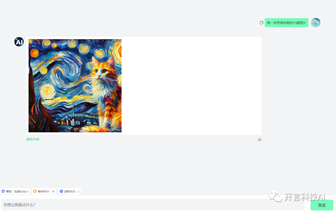 最新上线AI绘画Delle-3!只需两步点击切换模型就能快速在对话中使用文字生成图像功能,效果和ChatGPT官网一样好!赶紧试试吧。