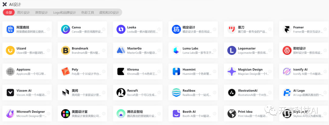 这类工具帮助用户生成或改进各种设计,比如LOGO、图标、海报、名片、网页等。用户根据需要选择不同的AI设计工具,输入相关信息或样本,即可得到AI生成或优化的设计,或者对自己的设计进行调整和美化。