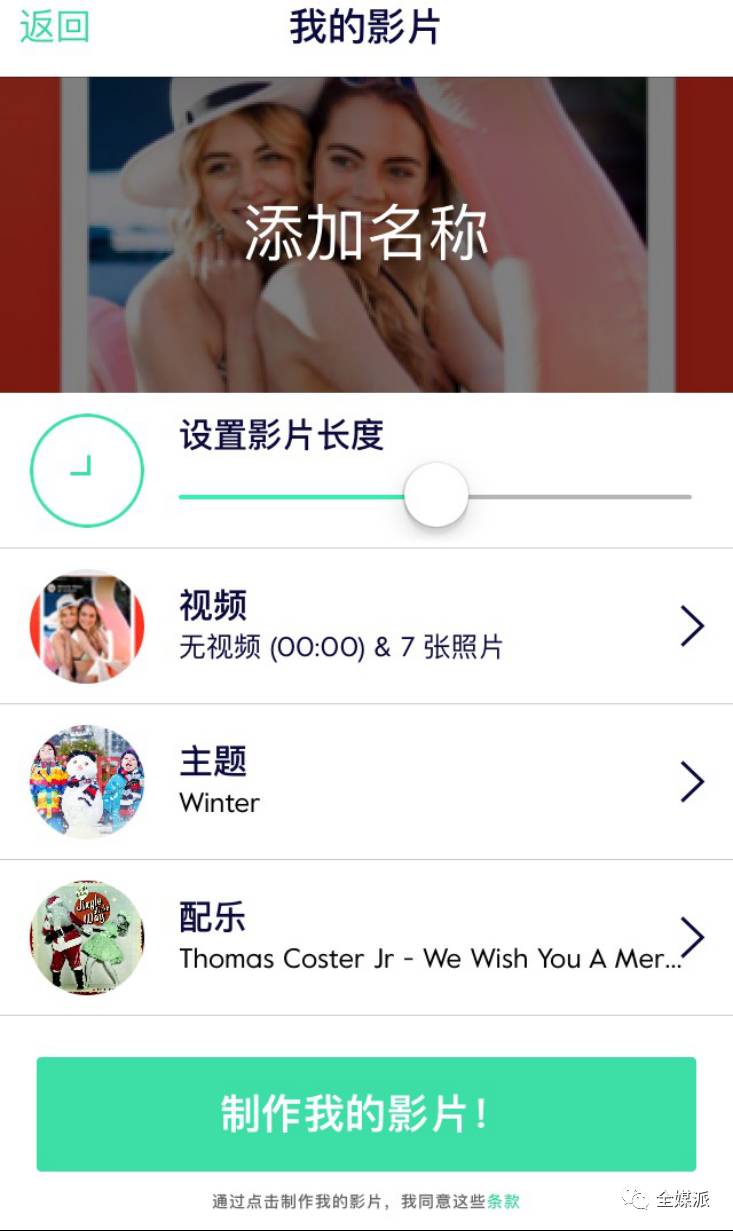 4. 最后给视频加上标题,等待几分钟的制作时间。制作完成之后,如果不满意还可以再次进入编辑,统统完成之后,便可以保存或分享啦~