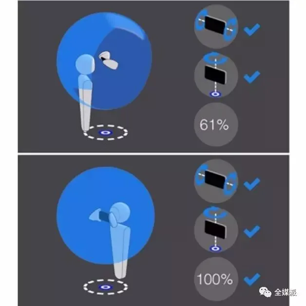 4. 拍摄时,用手机涂抹周围景象,从上到下,不要放过任何一个死角。拍摄时,屏幕右面显示百分比,表示进度。