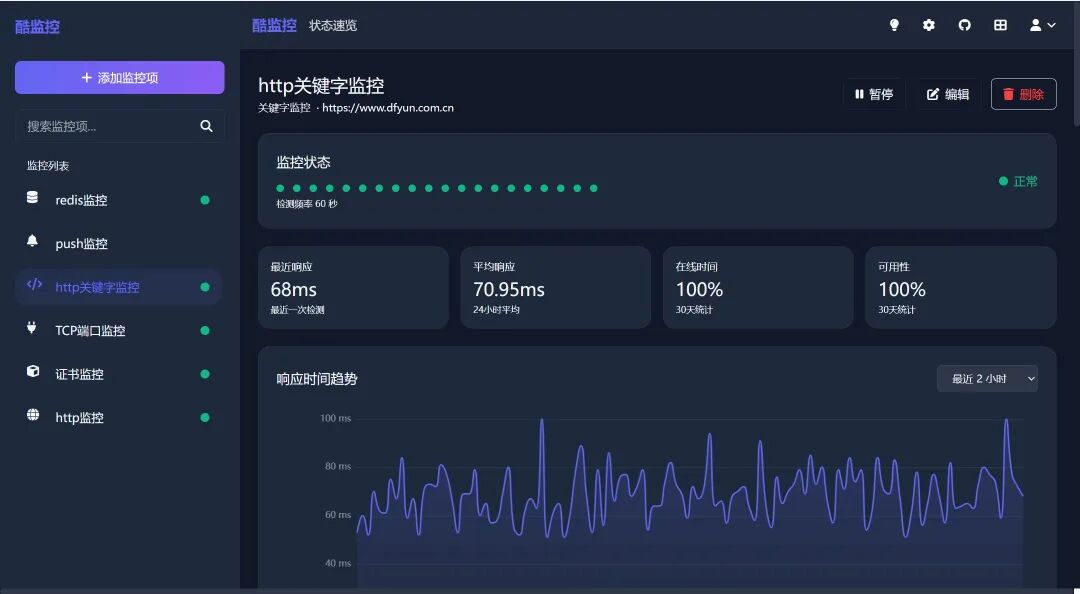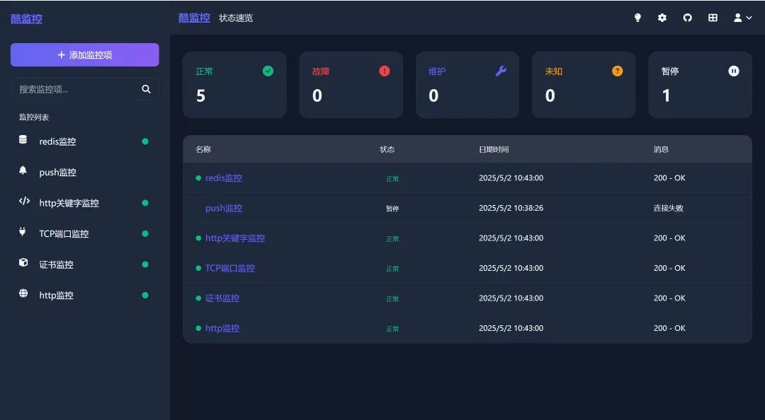 酷监控以极简部署、丰富监控能力与高颜值界面,填补了轻量级监控工具的空白。不管是个人开发、小型团队,还是需要监控内网服务的场景,它都能提供可靠、直观、低门槛的解决方案。