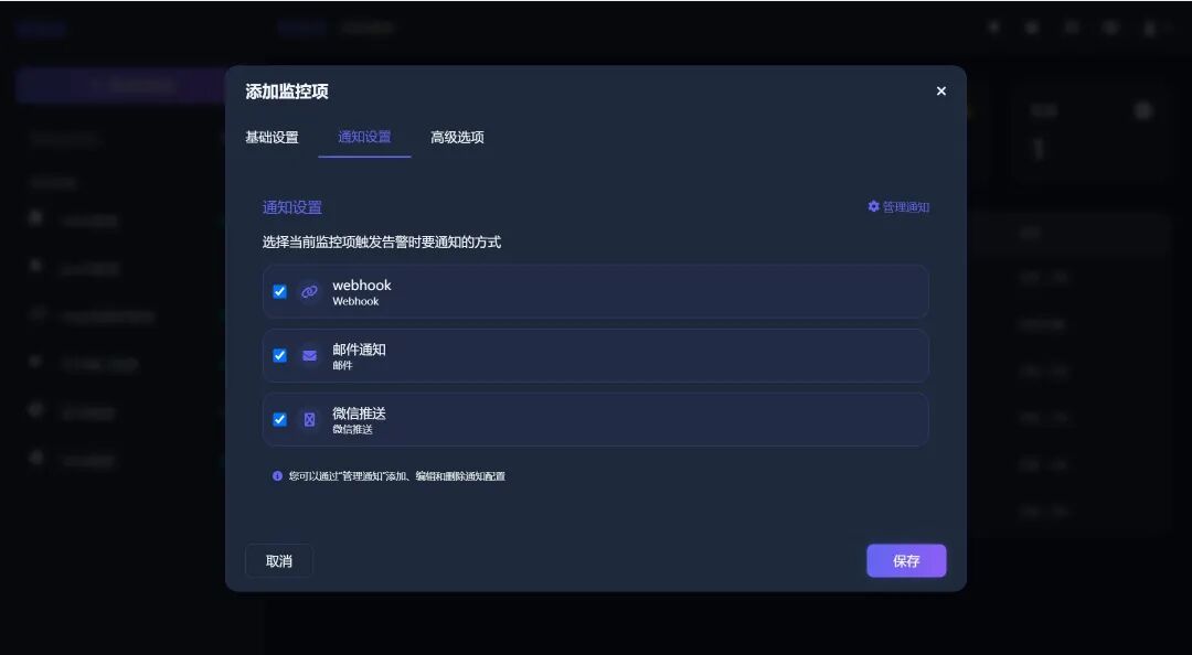 支持 邮件、Webhook、微信 等多种通知渠道