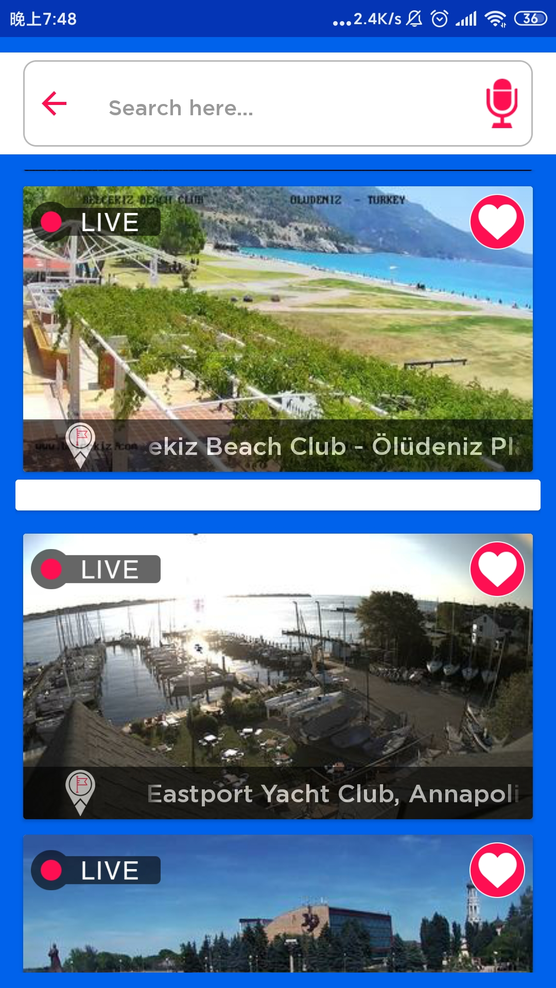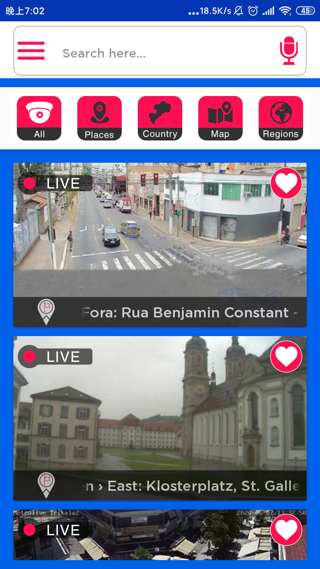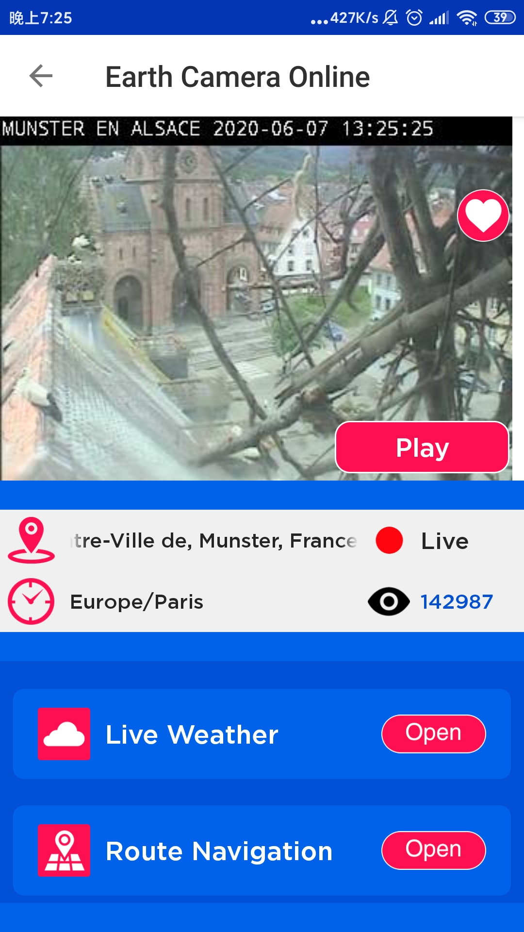 Earth Camera界面虽然全是英文,但其实免翻即可使用。随便点击一个视频即可连接到相应的摄像头。