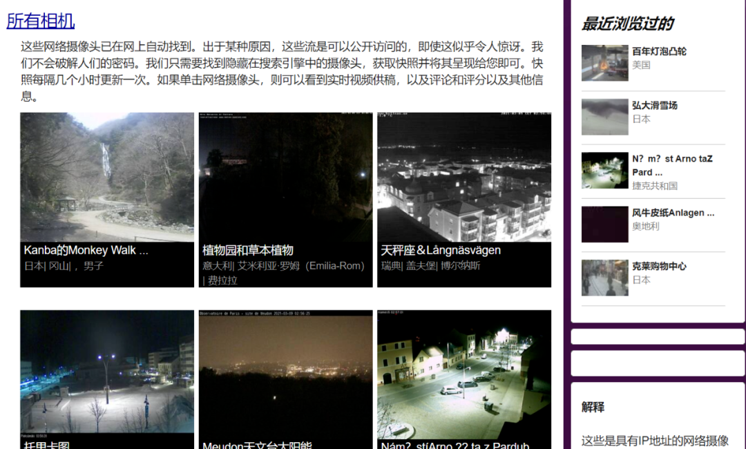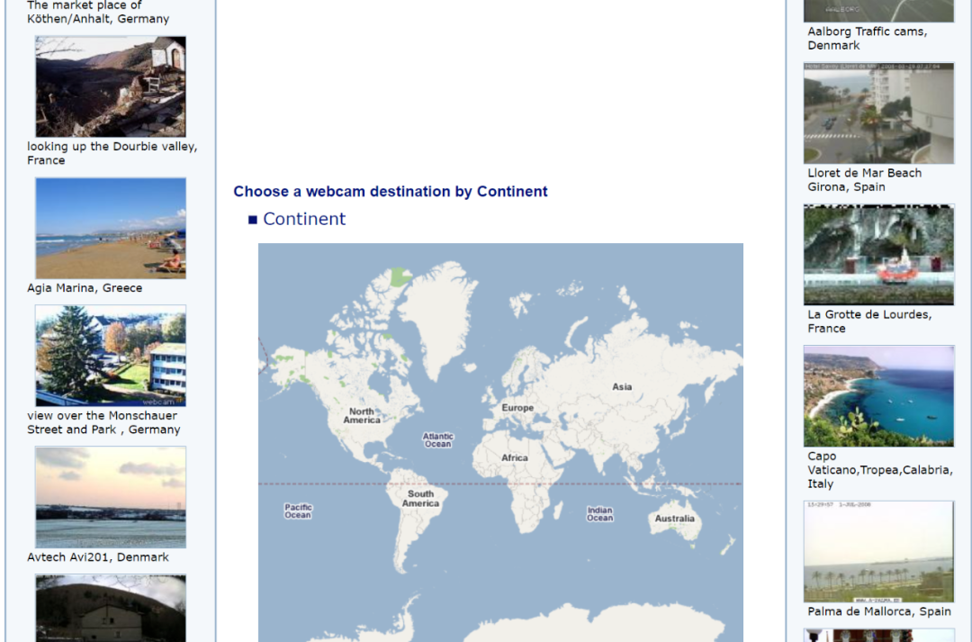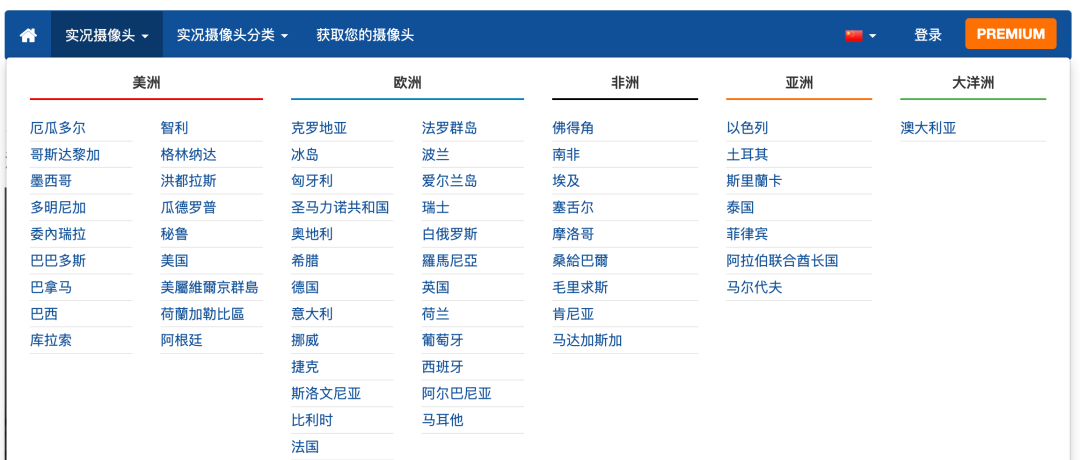 从2011年就开始在全世界安装实时网络摄像头,支持美洲、欧洲、亚洲、非洲和大洋洲,共59个国家。