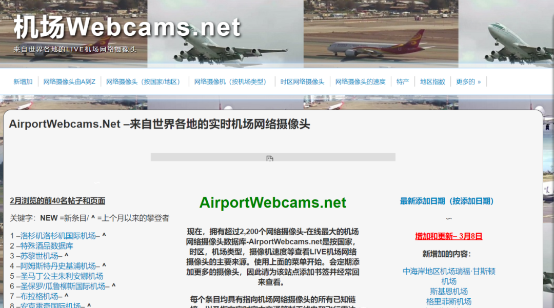 AirLive是网络和智能家居物联网产品的解决方案提供商。该网站上有部分全球机场网络摄像头和机场信息。可在线查看相关机场实时视频。