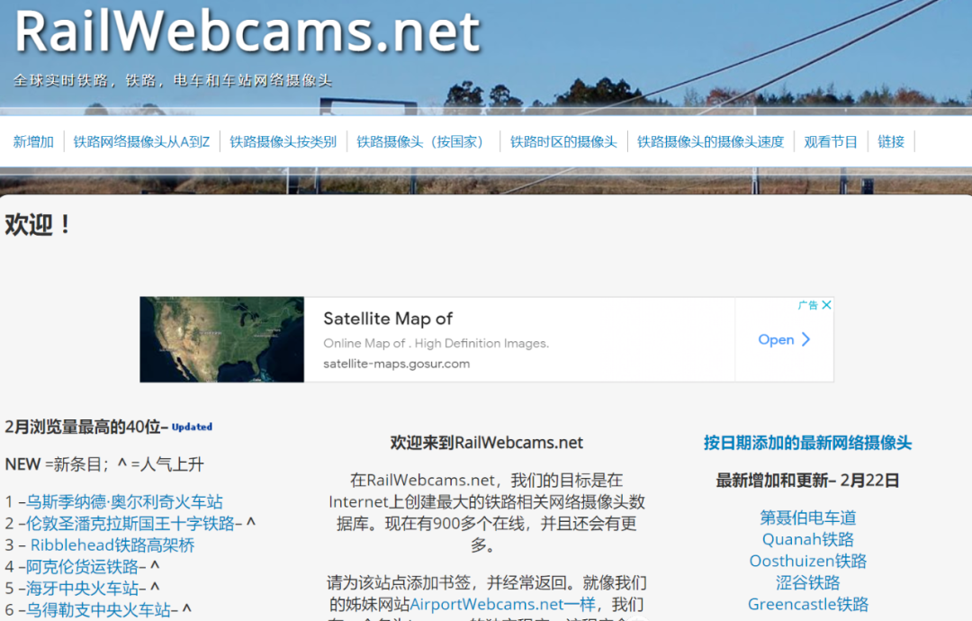 铁路相关网络摄像头数据库。现在有900多个在线。
