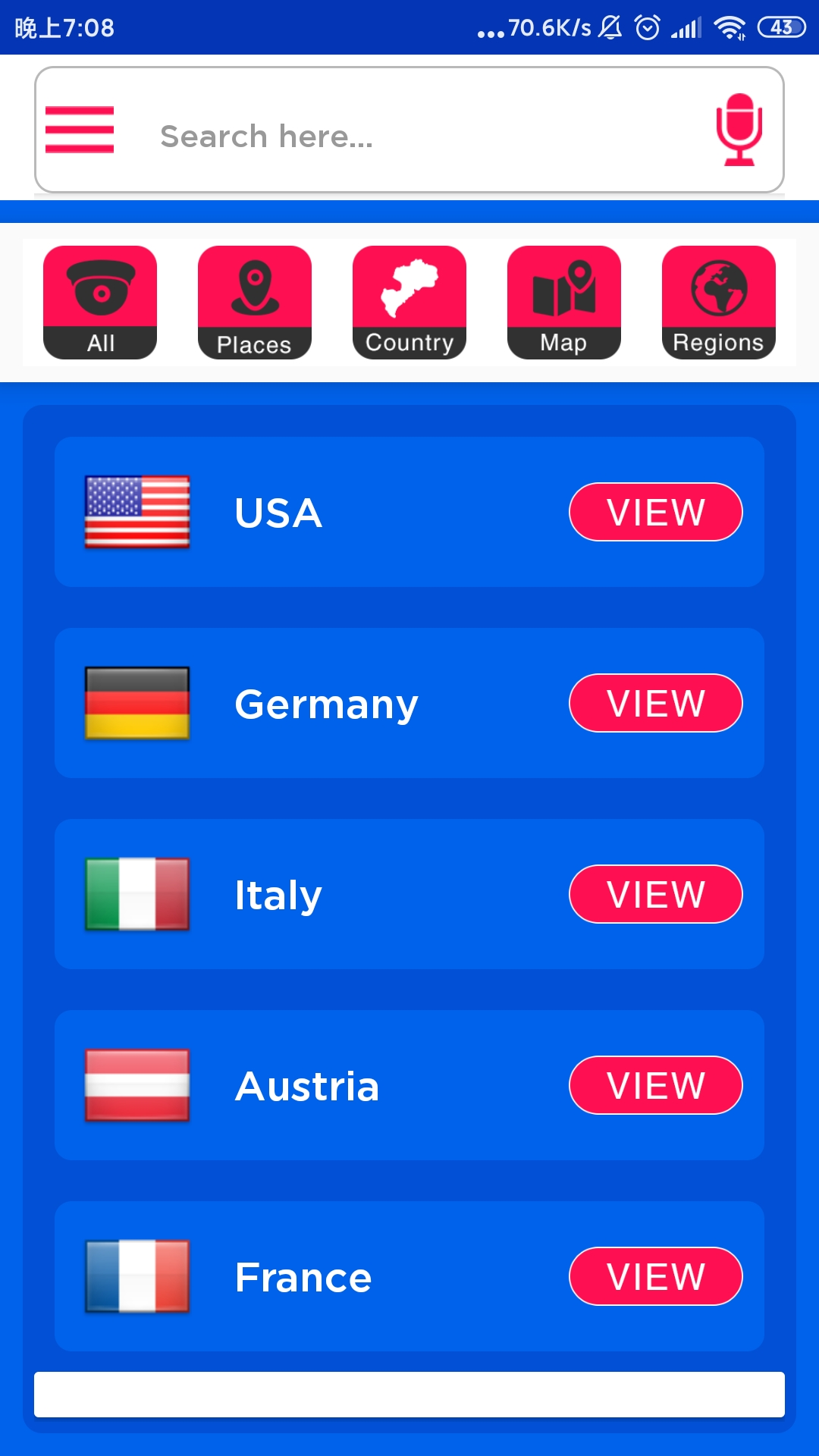 通过洲际可以直接选择你想要看的国家,如果你只对特别景观感兴趣,就点击「Categories」。如果你确定要看某个地点,还可以通过地图定位摄像头,非常方便。