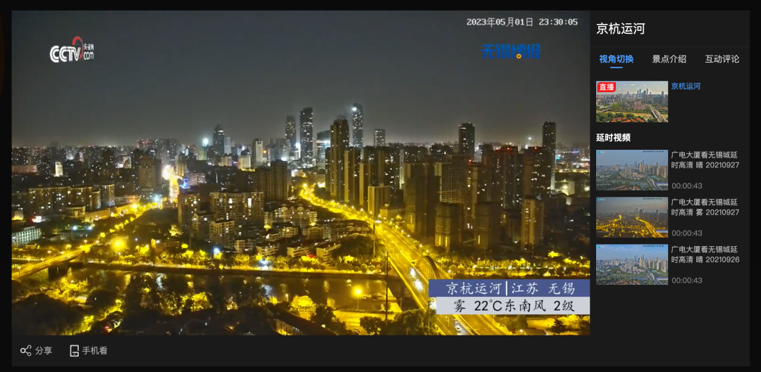 其中实景中国系列,将祖国的景点按照城市划分,点击去之后就能实时看到直播,并且伴随着舒缓的音乐。