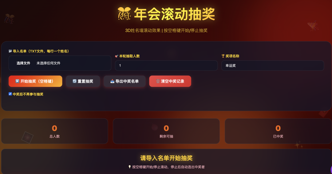制作理由:年会一般都要抽奖,这个工具是现在的刚需。