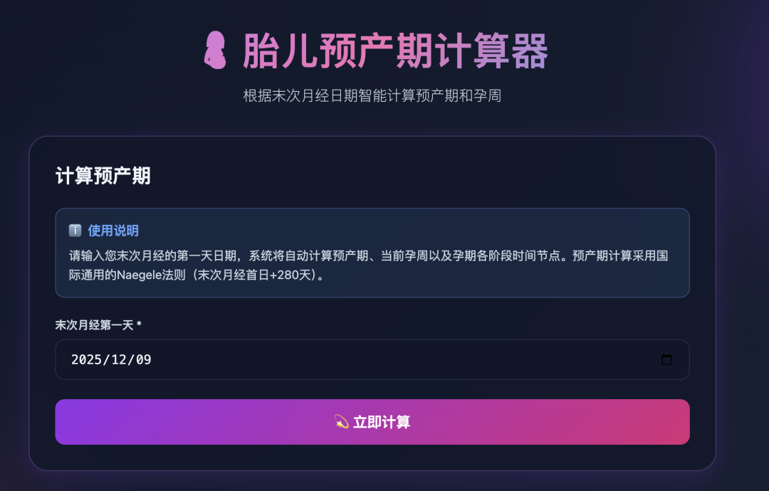 体验地址:https://dayulab.com/tools/life/pregnancy-calculator