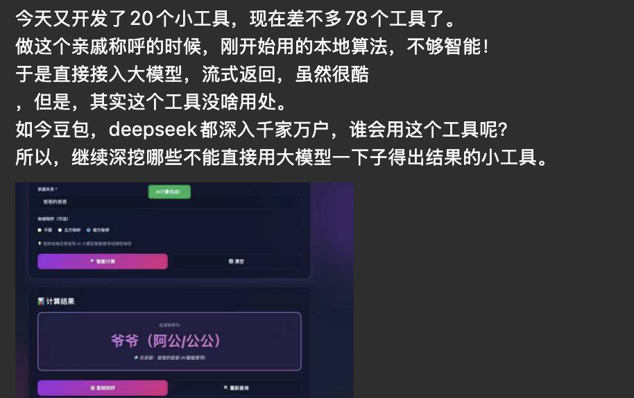 譬如:我昨天在朋友圈发的这个,一定要做大模型一下子不能直接得出结果小工具。