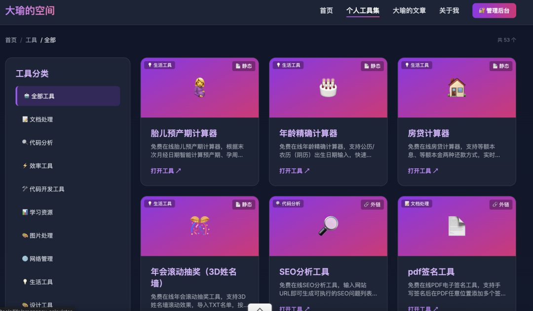 如果你也想做一个个人站,添加大瑜微信:helloaigc2023,领取一份小白从0-1开发个人站的教程吧。