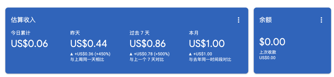 因为个人站的访问,也给我带了第一个1美元的google广告收益。感谢各位老铁们。