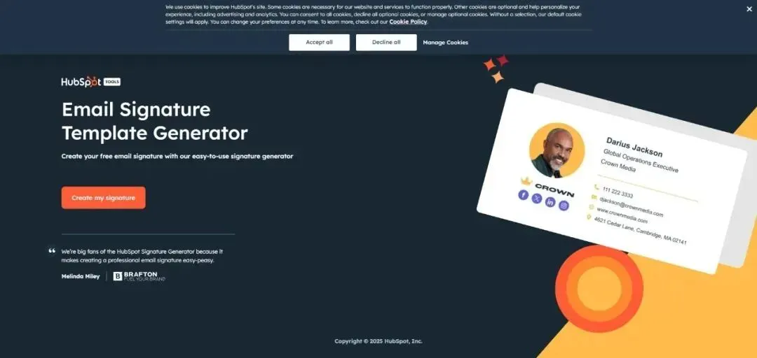 网址:http://www.hubspot.com/email-signature-generator#sig-generator-anchor