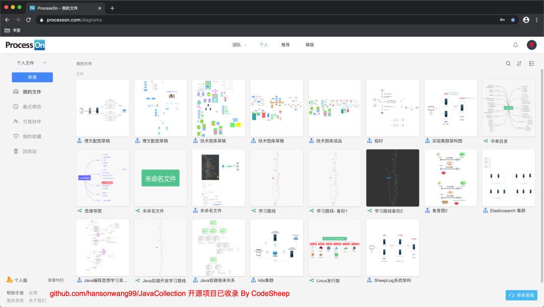 很多小伙伴咨询说博客文章里的技术图怎么画出来的,这里透个底,大部分都是通过processon画出来的,在线画图十分方便,几乎可以画出你想要的任何技术图,包括:流程图、思维导图、原型图、UML图、网络拓扑图、组织结构图等等。