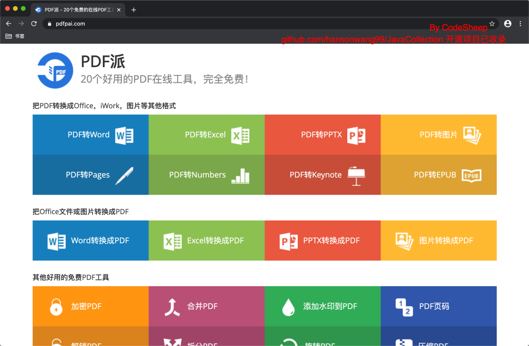 PDF派,一个包含了20个好用PDF在线工具的网站,各种转换都不在话下。