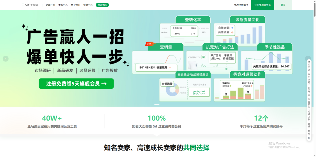 特点:功能最全面的综合型工具,适合精细化运营卖家,提供免费入门版本。