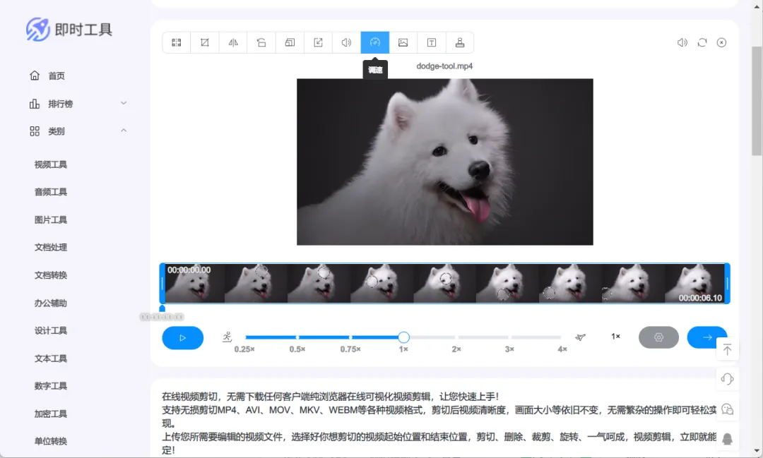 包含视频转换,压缩,裁剪,去水印,调速等。