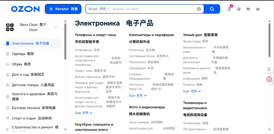 因为ozon后台,也就是咱们卖家上品操作的那个地方,它那个是中文的,但是这个买家端也就是俄罗斯的这个前台,它这个是俄文的。
