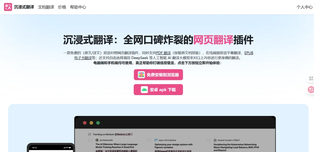 所以说这里咱们需要做一个网页的翻译,我自己用的是这个沉浸式翻译(展示效果如下)